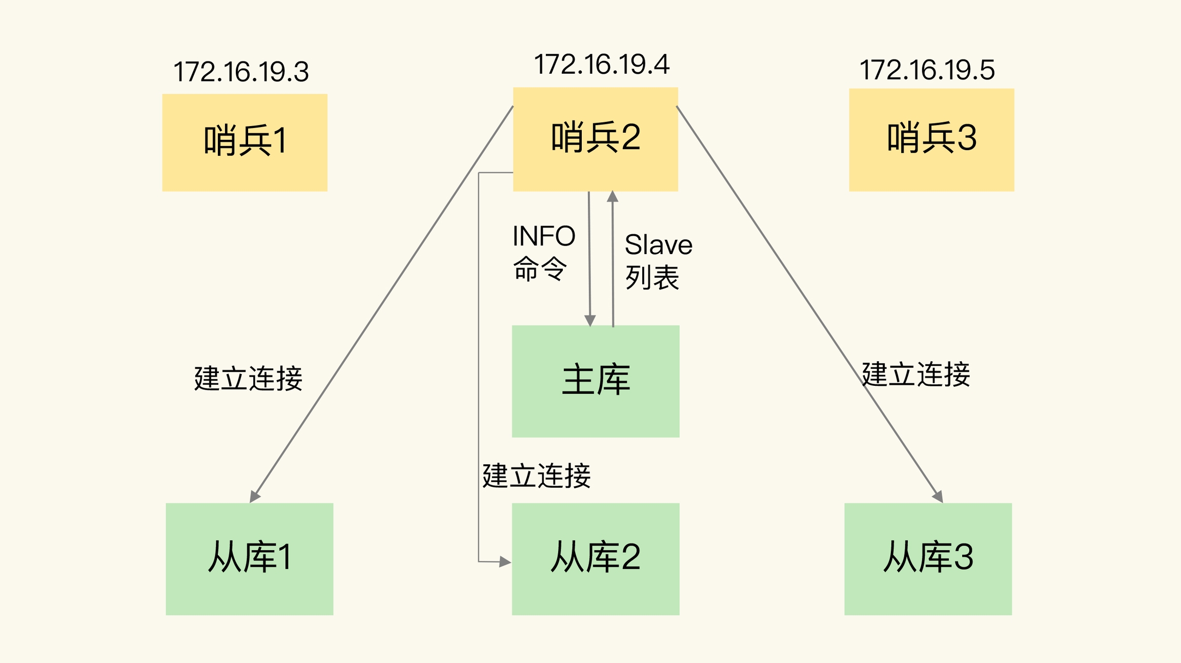 基于INFO命令的从库列表,这可以帮助哨兵和从库建立连接;