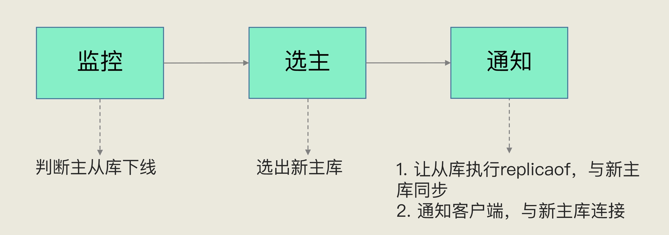 选出新主库后,通知从库和客户端。