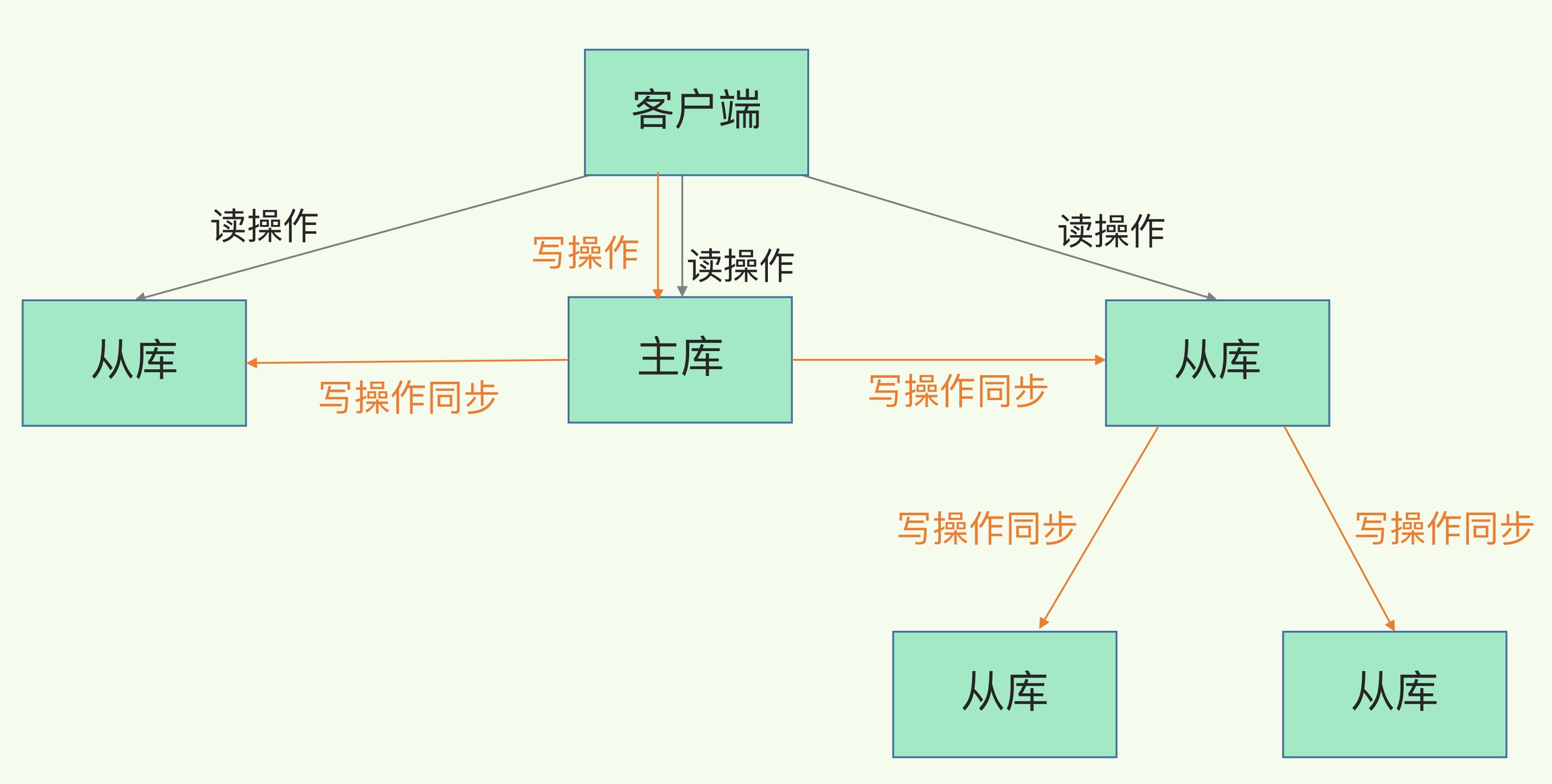 写操作:首先到主库执行,然后,主库将写操作同步给从库。