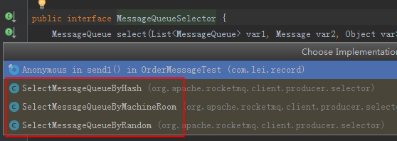 一个topic下有多个队列,为了保证发送有序,RocketMQ提供了MessageQueueSelector队列选择机制,他有三种实现: