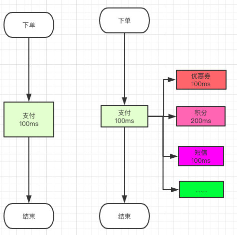再后来后来隔壁的产品老王说:下单成功后我们要给用户发短信,也将就吧,100ms去发个短信。