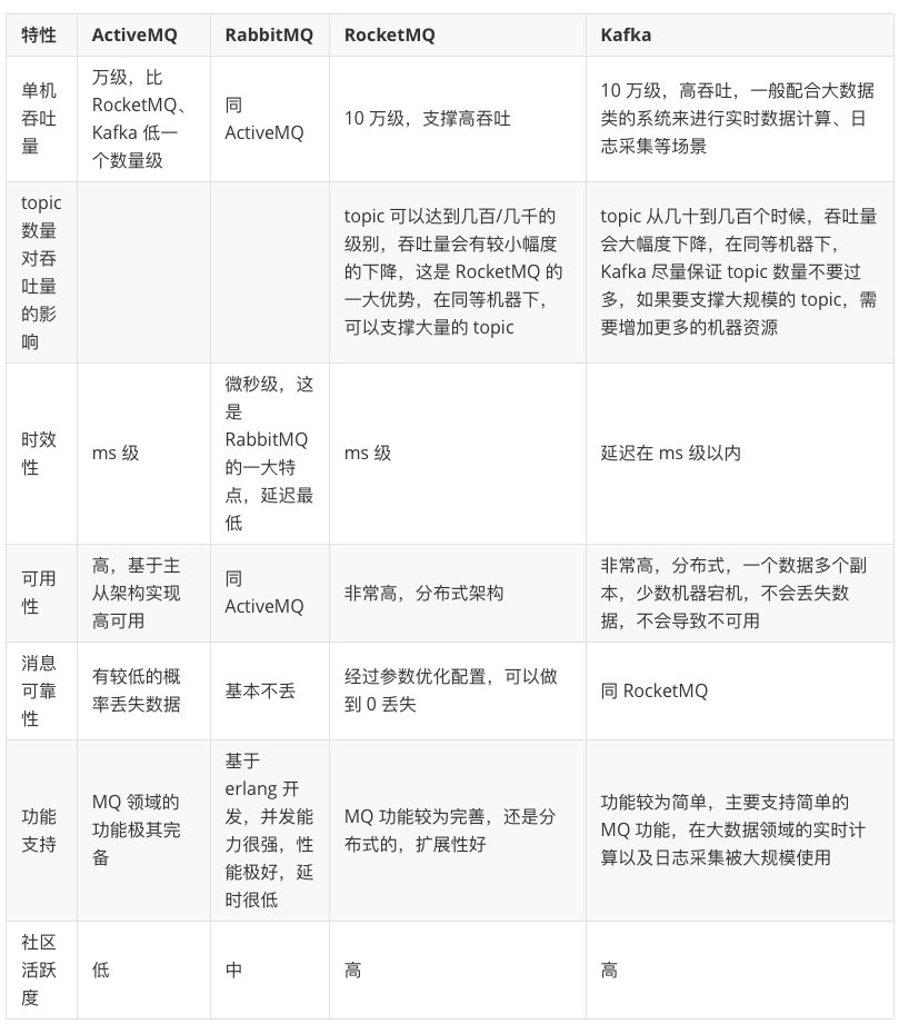 目前在市面上比较主流的消息队列中间件主要有,Kafka、ActiveMQ、RabbitMQ、RocketMQ 等这几种。
